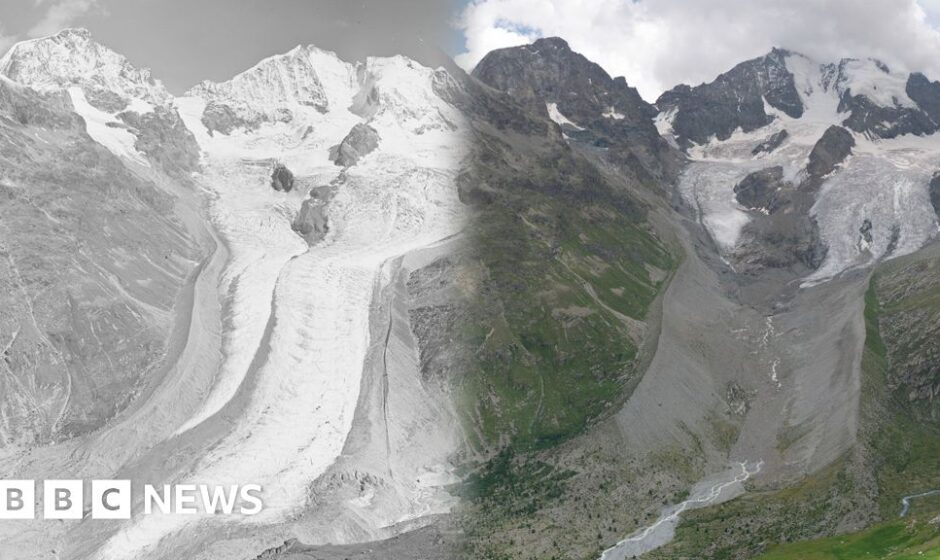 Top image: Tschierva Glacier, Swiss Alps, in 1935 and 2022. Credit: swisstopo and VAW Glaciology, ETH Zurich.