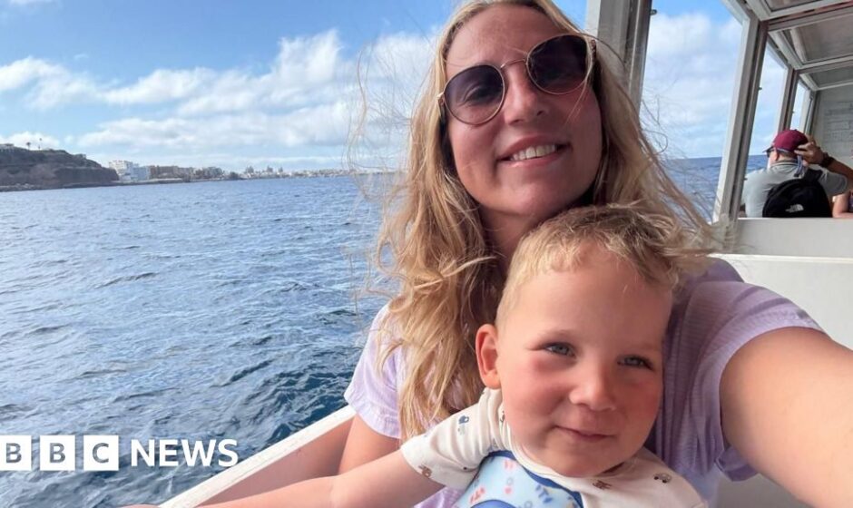 Contributed Megan has long blonde wavy hair and is taking a selfie of herself and Edward, who is sitting on her lap. They are on a boat in the sunshine, with white hotels in the background along the coastline.Contributed