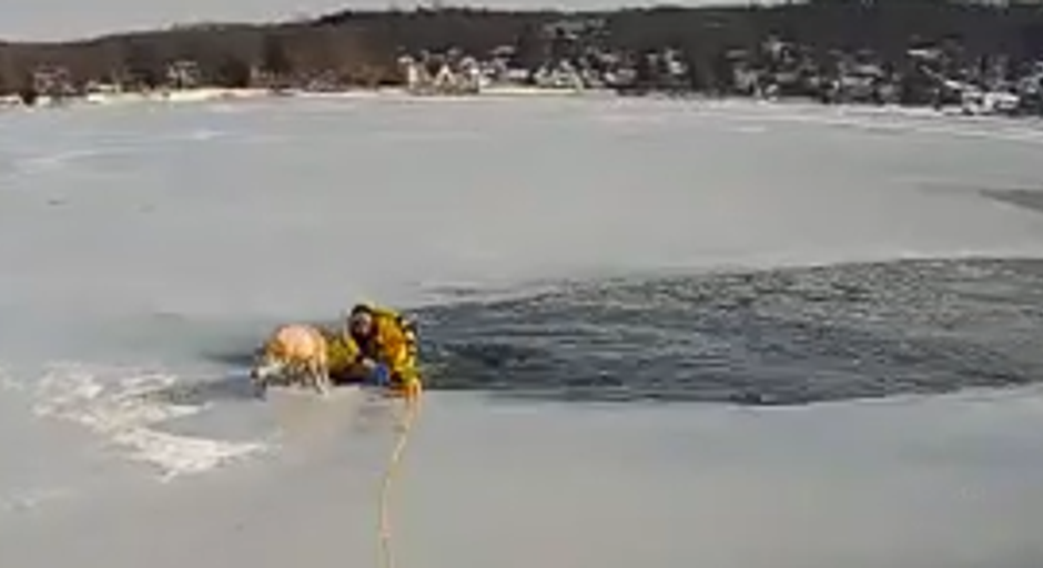 First responders quickly arrived at a frozen lake in New Jersey, where a dog had fallen through the ice and was trapped.