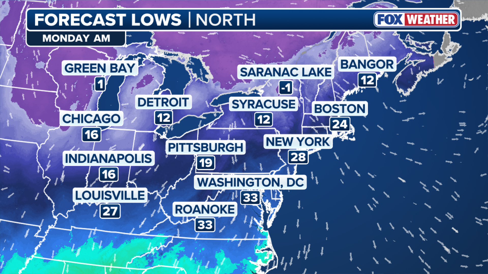 Areas across the Great Lakes and New England will see morning lows fall into the single digits once again by Tuesday morning.