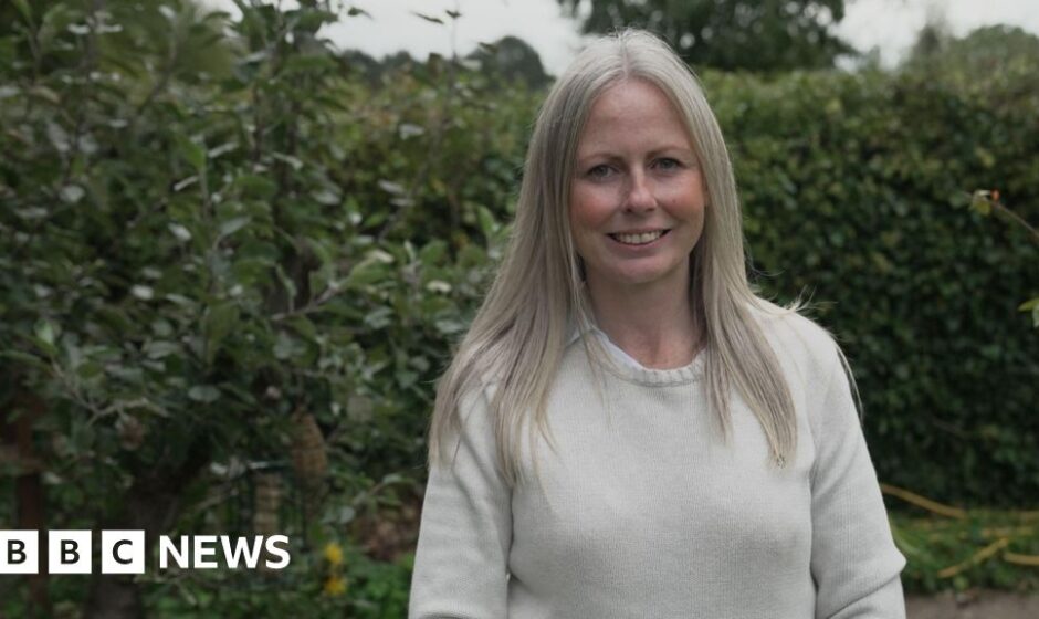 Andy Alcroft/BBC Emily, wearing a cream jumper, smiles as she stands in front of hedges and a tree with a bird feeder hanging in its branchesAndy Alcroft/BBC
