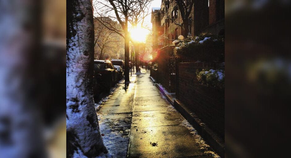 Sidewalk Scene in Winter, New York City, New York, USA. February 2014.