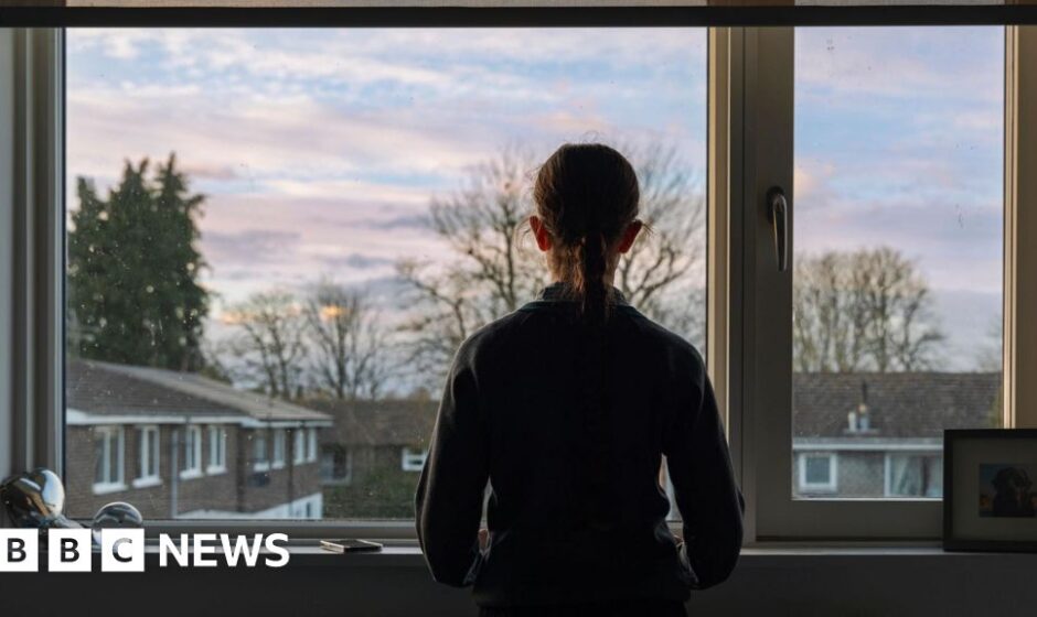 Getty Images A young person with long hair tied in a ponytail looks of her bedroom window. They are in shadow, while the roofs of other houses are clearly visible and there are trees in the background.Getty Images