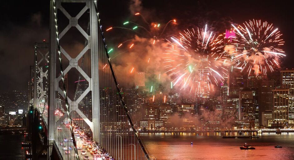 FILE: NEW YORK, US – JANUARY 01: Fireworks lit up the sky behind the Statue of Liberty during the new year celebrations in New York City, United States on Sunday night, on January 01, 2024. Many people gathered outside to welcome the New Year in a festive climate. Crowds flocked to squares and entertainment centers to celebrate the end of 2023 and the arrival of 2024.