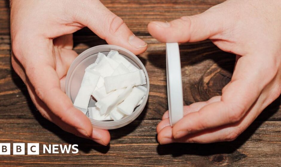 The small, white teabag-like pouches are bought in round, brightly-coloured tins. They contain synthetic nicotine rather than tobacco, and young men have told the BBC they can produce a powerful hit.