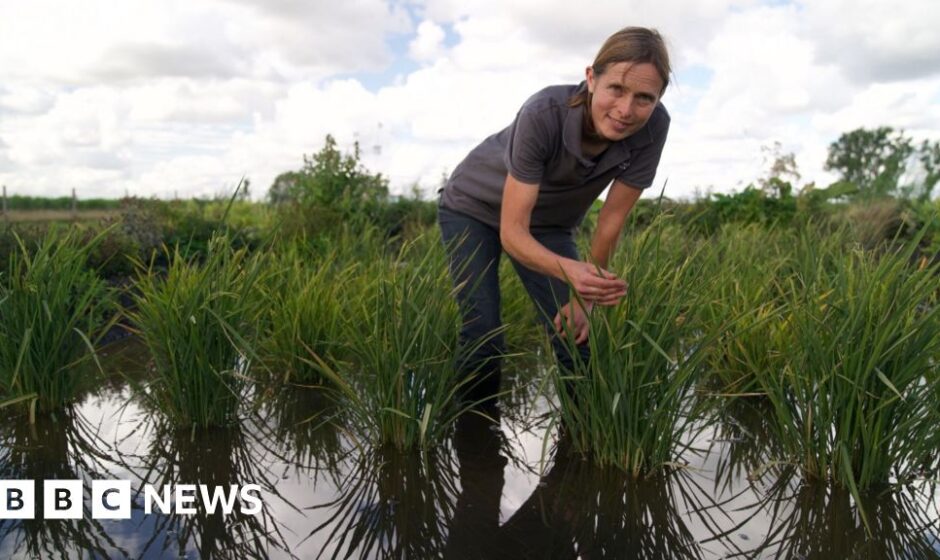 Gwyndaf Hughes/BBC“It’s possible that for certain areas, peatland re-wetting and growing rice may be a viable option. In other areas, we may continue to grow our conventional crops, but under different conditions,” he says.